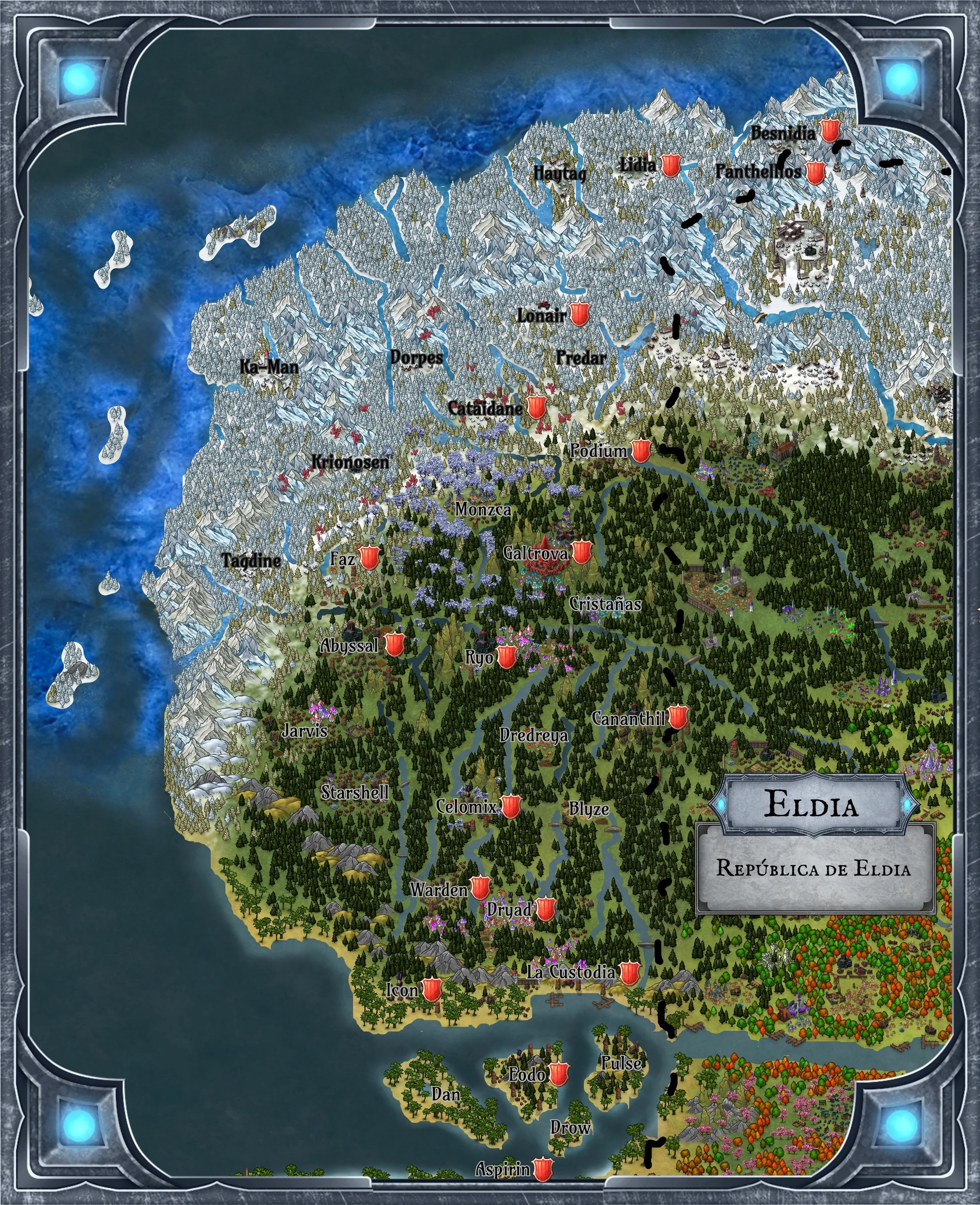 A menudo considerada como la cúspide de las sociedades entre los demás países, Eldia es la cuna de la raza de los elfos y la cuna del concepto entero de las civilizaciones.