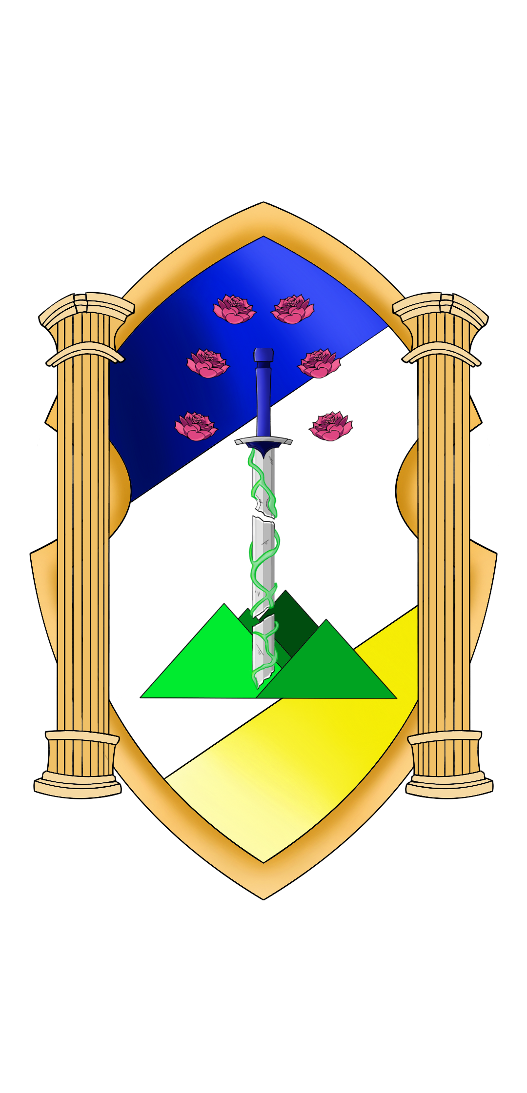 Las columnas que flanquean la espada representan la estabilidad estructural y moral de La Capital. No solo aluden a la solidez de la nación como proyecto político, sino también al frágil equilibrio continental que se sostiene gracias a la cooperación entre especies en el territorio central del continente.
