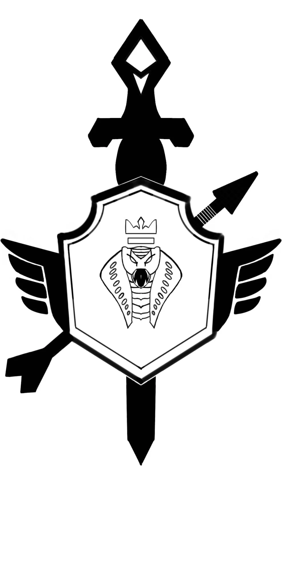Probablemente la parte más influyente y visualmente reconocible del símbolo; esta no es una espada cualquiera, en realidad se trata de una doblemano mazdia rota. Representa el final de La División, la primera gran guerra que causó la ruptura entre las especies del continente.